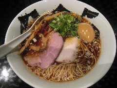 666 | ラーメン | 東京都世田谷区駒沢 | ★★ (2014.11.8) | 普通 | ![]() | 駒沢大学駅から5、6分、国道246号沿いにあります。長野で展開する凌駕グループの東京進出店だそうです。不吉な数字の店名ですが、店主が好きな数字なのだそうです。暖簾以外はラーメン屋の思えないような外観です。店内は、カウンター席が7つあります。黒い壁、ガラスのモザイク、黒いカウンター、白黒のタイル、白と緑の椅子など、アートでお洒落な内装です。、味玉煮干醤油ラーメン(850円)を注文しました。刻みネギ(長ねぎ、玉ねぎ)、長いメンマ、チャーシュー(豚ロースと鳥の胸肉)、味玉が入っていました。麺は若干細めでストレートです。スープは、濃い色で煮干が強めです。美味しいです。食べ終わると丼に666と書かれていました。その他、コンデンス煮干つけ麺、ニボガッツなどそそられるメニューがあります。 |