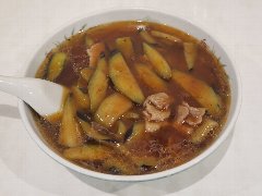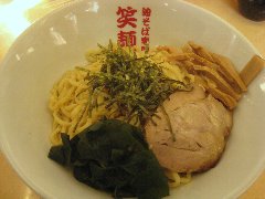 笑麺亭 | ラーメン | 東京都大田区西糀谷 | ★ (2014.12.21) | 普通 | ![]() | 糀谷駅と大鳥居駅の間、環八通り沿いにあります。大きな赤い看板が目立っています。南向きで日当たりが良さそうですがガラス張りです。店内は、カウンター席が7つ、狭いです。油そば(大盛)(670円)とチータンタン(60円)を注文しました。店主に食券を渡すとチータンタンはランチサービスとの事でお金を返してくれました。麺の量は並からメガ盛まであり、並、大盛までは同料金です。油そばは、刻みのり、めんま、チャーシュー、わかめ、刻みネギが乗っていました。食べ方が書いてあり、混ぜるラー油とお酢の分量の目安が書かれています。教えの通り混ぜて食べました。食べ終わってチータンタンを頼むと、生卵、刻みのりを淹れてスープで割って出されます。美味しいです。この値段でこれだけ楽しめれば安いかも。その他、辛味油そば、スペシャル油そばがありました。 |