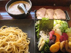 つけそば | ラーメン | 東京都品川区西五反田 | ★★ (2010.8.30) | 普通 | 無し | 五反田、大崎広小路の交差点に近くにあります。店内は明るく清潔感があります。カウンター席が7、テーブルが5つありました。特製つけそば(中盛り)(1000円)を食べました。麺の量は普通、中、大で同じ値段です。のり、ねぎ、ざく切りチャーシュー、めんま、ナルト、別の皿で味玉とチャーシューとめんまが付いていました。麺は縮れた太麺です。スープはWスープで少し酸味がありました。美味しいです。割りスープはテーブルのポットに入っています。 |