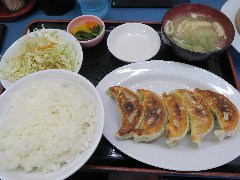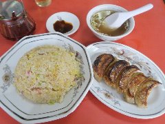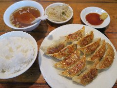 ![]() | 蒲田駅東口から2分ほど、線路沿いを北に行った辺りにあります。有名な餃子屋が多い中のマイナー派です。緑色に赤文字の看板が目印です。お店の外にメニューはたくさん貼られていました。店内は、カウンター席が7つ、テーブルが1つありました。2階にもテーブルがあるようです。1階は小ぢんまりしいています。壁にはメニューがいっぱいです。焼餃子の定食(700円)と自家製焼売(480円)を注文しました。定食には、ご飯、味噌汁、サラダ、漬物が付きます。餃子は野菜と肉バランスがよく、皮はパリっ焼かれながらモチっとしていました。ちょうどいい大きさです。焼売はしっとりと蒸篭で蒸されていました。どちらも美味しかったです。他には、水餃子、揚げ餃子、炒飯の他、本格的な各種中華料理がありました。 |