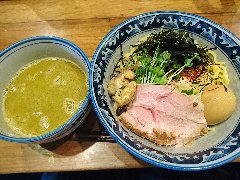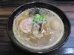 ![]() | 雪が谷大塚駅南口から1、2分、路地にあります。和風な外観です。店内は、カウンター席が12ありました。店内も和な雰囲気です。鶏と魚介の特製つけ麺(1100円)を注文しました、つけ汁に味玉、メンマ、刻みチャーシューが入っていました。麺側にカイワレ、チャーシュー(鶏と豚)が乗っていました。レンゲに揚げ鶏皮が付きます。麺はやや太めのストレートです。スープは鶏と魚介出汁、伊達鶏を2日間煮込み5種類以上の魚介や昆布と合わせているそうです。濃厚で美味しいです。スープが冷めてきたら、焼き石で再加熱してくれます。他には、辛つけ麺、東京軍鶏そば、濃厚煮干しそば、担々麺などがありました。店員さんは丁寧です。火曜日は進化論という店になるそうです。 |