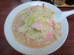 ![]() | 亀戸駅北口から2、3分、京葉通り沿い、亀戸駅前の交差点の近くにあります。ビルの1階です。開店時に行列が出来て2巡目になりました。店内は、カウンター席が12ありました。昭和歌謡が流れていました。濃厚タンメン(930円)を注文しました。先ににんにくと生姜入れるか聞かれます。もちろん入れました。もやし、キャベツ、ニンジン、玉ねぎ、ニラ、コーン、きくらげ、豚肉など入っていました。麺はやや太めで縮れていました。スープは豚骨メインと野菜の旨味、にんにくと生姜が効いていて全体的にまろやかです。炒めた野菜は山盛りでシャキシャキでした。とても美味しかったです。他には、あっさりタンメン、味噌タンメン、麻辣タンメンなどがありました。 |
