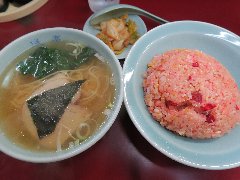 a亭 | ラーメン | 東京都世田谷区北沢 | ★★ (2018.5.26) | 普通 | ![]() | 下北沢駅南口から3分、あずま通り商店街にあります。いかにも昔ながらの中華料理屋の外観です。店内は、カウンター席が8つ、テーブルが4つ、二階に座敷もあります。昭和の空気が流れています。メディアにもしばしば登場する有名店のようで、開店時から1階の席は埋まりました。ラーチャン(850円)を注文しました。半ラーメンと半チャーハンのセットです。キムチが付きます。ラーメンは、海苔、ほうれん草、チャーシュー、刻みネギが入っていました。昔ながらの鶏ガラの醤油ラーメンです。チャーハンはピンク色、チャーシューの食紅の色なんだそうです。見た目にインパクトありますが、味は通常のパラパラ系チャーハンです。美味しいです。他には、各種中華料理、各種定食、各種チャーハン、お粥などがありました。この種類のお店でこれだけ人気があるのは凄いですね。 |