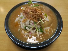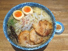 ![]() | 青物横丁駅から2分ほど、駅前の通り沿いにあります。2階建ての建物です。和知路大きめの看板です。店内は、カウンターが10、テーブルが4つありました。奥に細長いです。九条ねぎらーめん(1000円)を注文しました。九条ネギ、チャーシュー、メンマが入っていました。麺は細めのストレートです。スープは豚骨醤油に背脂が入っていました。やや甘めで少し辛味もありました。九条ネギはシャキシャキとして歯応えがいいです。チャーシューは大きめでした、材料には拘っているようです。美味しかったです。他には、めんくららーめん、魚介とんこつらーめん、味噌とんこつらーめんなどがありました。 |