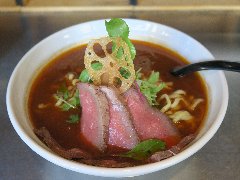 ![]() | 東西線の門前仲町駅から1分、永代通り沿いにあります。コッコロコというバルの建物内の1階で昼間だけ営業しているようです。ガラス戸で店内が見えます。店内は、カウンター席が6つ、テーブルが1つありました。ラーメン屋のスペースは狭いです。ぶるずラーメン(980円)を注文しました。けっこう時間掛かりました。ローストビーフ、レンコン、タケノコ、ベビーリーフ、水菜などが入っていました。麺は太めで縮れていました。スープは、フレンチのフォン・ド・ヴォーを作る技法で牛骨と香味野菜とトマトを煮込んでいるそうです。旨味が濃厚で洋風な味わいです。結構大きなローストビーフが3枚入っていました。少し焼いたクロワッサンのサービスがあり、残ったスープにつけて食べます。美味しかったです。他には、ラーメン(ローストポーク)、ぶるずつけ麺などがありました。 |