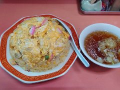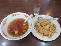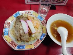 ![]() | 錦糸町駅北口から1.1kmほど、都道315号の石原三丁目の交差点の近くにあります。2階建ての建物です。赤い暖簾が掛かっていました。店内は、カウンター席が7つ、小上がりが1つりました。かなりレトロ、昔ながらの雰囲気です。五目チャーハン(1000円)を注文しました。チャーハンの上にチャーシュー、カマボコ、エビ、卵焼きが乗っていました。チャーハンはしっとり系で割りと優しい味付けでした。美味しかったです。何気にスープが美味です。他には、パイコー麺、五目柔焼そば、オムライスなどがありました。 |