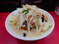 大 | ラーメン | 東京都大田区大森東 | ★ (2012.6.23) | 普通 | ![]() | 平和島、国道15号沿いにあります。二郎インスパイア系のお店です。看板に「ニンニク入れますか?」と大きく書かれています。店内は広いのですがカウンター席の9席です。野菜は、普通、多め、増し、増し増しから選べます。ニンニク、脂、味を好みに出来ます。ラーメン(野菜大盛り)(650円)を食べました。もやし、キャベツが山盛り、背油、チャーシュー2枚が乗っていました。麺は太麺で縮れています。麺自体にけっこう塩味がある感じでした。スープは醤油ベースです。二郎系のトッピングの注文方法に悩むことが無いように丁寧に説明が書かれています。本店は堀切だそうです。けっこう人気あるようで混んでいました。 |
