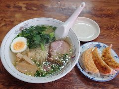 支那そば | ラーメン | 東京都江東区富岡 | ★★★ (2013.3.17) | 普通 | ![]() | 門前仲町駅から3分ほど、富岡八幡宮に近くにあります。店内にはカウンター席が8つ、テーブルが4つあります。とても明るい雰囲気で、店員さんは粋なバンダナハチマキを巻いています。支那そば醤油味(650円)+黒豚ロース餃子(450円)を食べました。かいわれ、メンマ、チャーシュー、刻みネギ、海苔が入っていました。麺は細麺で縮れています。珍しいタイプです。スープには背油が浮いています。餃子は小さめで10個です。餃子は特製だれで頂きます。支那そばも餃子もどっちも美味しいです。ワンタンメンやつけ麺もあります。 |