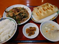 ![]() | 蒲田駅西口から2、3分、ロータリーから延びるバス通り沿いにあります。マンションの2階です。餃子で有名なニイハオの系列店です。店内は、テーブルが多数ありました。けっこう広く、明るくてきれいです。本日のお得セット(レバとニラ炒め定食焼餃子付き)(1100円)を注文しました。ご飯、スープ、ザーサイ付き。レバニラはもやし、ニラ、玉ねぎ、レバーが入っていました。レバーはやや小さめ。餃子はもちろん羽根付き、皮はもちもち、中はジューシーです。美味しかったです。やっぱり餃子が美味です。他には、各種中華料理、他のお得セットはエビ炒飯でした。 |