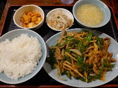 ![]() | 新馬場駅北口から2、3分、北馬場参道通り沿いにあります。2階建ての建物です。外観は何となくそば屋風です。店内は、テーブルが5つ、小上がりにテーブルが3つありました。意外と広いです。壁にメニューがいっぱい貼られていました。芝えびと玉子チリソース炒め(850円)を注文しました。サラダ、ザーサイ、スープ、デザートが付きます。エビチリは芝エビと玉子がたっぷり入っていました。甘さと辛さは丁度いいです。ご飯ともよく合います。美味しかったです。そして安いです。他には、ふくろだけと若鶏炒め、ホイコーロー、ピーマン牛肉やきそばなどがありました。 |