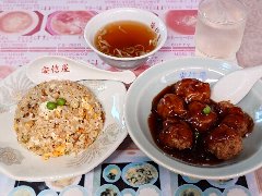 ![]() | 御嶽山駅か1分、池上線沿いにあります。マンションの1階です。あんしんやと読みます。店内は、テーブルが9つありました。テーブルも壁もメニューだらけでちょっと落ち着きません。厨房からは威勢の良い声が聞こえます。入口から池上線が見えます。チャーハン(750円)、半分肉だんご(650円)を注文しました。チャーハンは玉子、チャーシュー、ネギが入ってパラパラしていました。玉子多めです。肉団子は半分でも6個、大きめで肉々しくて甘めの餡が掛かっていました。酢を足してもいい感じです。美味しかったです。特にチャーハンは美味。他には、らーめん、餃子、えびどうふ、オムライス、やきにく定食などがありました。 |