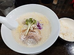 らーめん | ラーメン | 東京都江東区亀戸 | ★★ (2017.6.10) | 小高 | ![]() | 亀戸駅北口から3分ほど、亀戸五丁目中央通り商店街に看板が出ていて、少し路地に入るとあります。アパートっぽい建物の1階にあります。お店の外に4人待ち、タイミングが悪かったのかかなり待ちました。店内は、カウンター席が3×3、テーブルが1つありました。スダレなど簡易な内装です。特製鶏だし塩らーめん(1100円)を注文しました。海苔、豚バラチャーシュー、鶏チャーシュー、鶏つくね、メンマ、味玉(半)、刻みネギ、青ネギが入っていました。麺は、中太です。スープは、濃厚な鶏白湯、とろみはないけどクリーミーです。美味しいです。他には、鶏だし醤油、鶏だし味噌、野菜たっぷりタンメン、つけ麺などがありました。 |