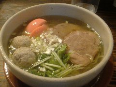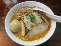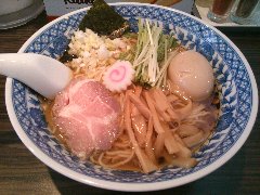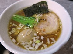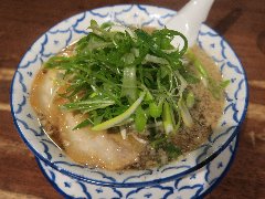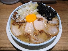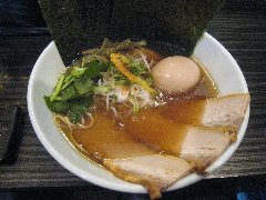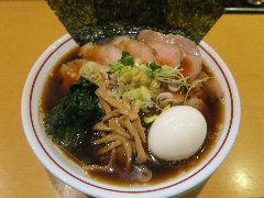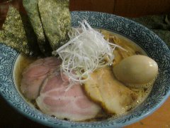 麺屋 ほたる | ラーメン | 東京都北区滝野川 | ★ (2014.6.26) | 普通 | ![]() | 板橋駅の東口から1分、すぐ近くにあります。和風の洒落た外観です。店内は、カウンター席が9つ、きれいです。鶏旨味味玉らーめん(780円)+中盛(50円)を食べました。海苔、なると、水菜、めんま、チャーシュー、味玉、刻みネギ、揚げネギが入っていました。チャーシューは半生のローストっぽいです。麺の太さは普通でストレートです。スープはきれいな鶏清湯です。油は多めでちょっと甘みがあります。つけ麺は豚骨魚介だそうです。油そばもありました。 |