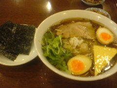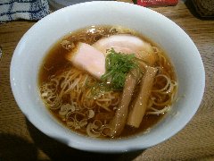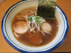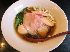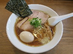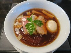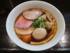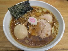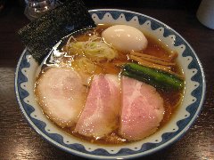 おおぜき中華そば店 | ラーメン | 東京都渋谷区恵比寿西 | ★★ (2013.2.16) | 普通 | ![]() | 恵比寿駅西口から2分ほど、恵比寿神社のすぐ近くにあります。今風の店内にはカウンター席が10あります。中華そば、にぼしそば、白湯そば、つけそば等のメニューがあります。味玉にぼしそば(850円)を食べました。味玉、海苔、メンマ、チャーシュー(二種、豚ロースとローストっぽい豚肩ロース)、刻みネギ、なると、が入っていました。麺は細めです。スープは、無化調、にぼしの風味けっこう強いけど苦くはありません。美味しいです。ちょうど昼時で満席でした。 |