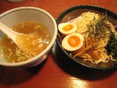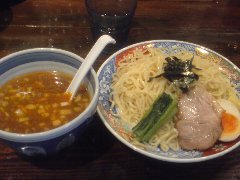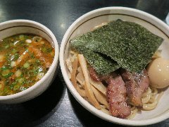 AFURI | ラーメン | 東京都渋谷区恵比寿 | ★ (2010.3.16) | 普通 | 無し | 恵比寿駅の近く、店の裏は渋谷川が流れています。有名な厚木のZUND-BARの系列店のようです。AFURI(阿夫利)とは、ZUND-BARの近くにある大山の別名である阿夫利山から取っていると思われます。スープに使ってる水は大山の水らしいです。店内はラーメン屋ぽくない洒落た感じです。長いカウンターのみでテーブルはありません。つけ麺柚子露(大)(950円)を食べました。炙りチャーシュー、味玉(半)、刻みのり、水菜、めんまが入っていました。チャーシュー美味しいです。麺は中太の縮れ麺で金属の器に入っています。スープは鶏ベースの醤油でかなり甘いです。刻みねぎ、ごま、とうがらし、柚子は入っていました。付け汁の器は小さいです。スープ割りはとっくりに入れてくれて自分で割ります。今回はスープがちょっと甘くて微妙だったので、他のメニューも食べてみたいですね。 |