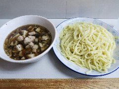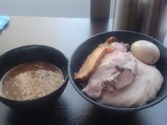 ![]() | 三河島駅から3、4分、尾竹橋通り沿いにあります。マンションの1階です。店内は、カウンター席が10ありました。奥に長いです。豚骨臭が漂います。清潔感がないです。あんきもつけ麺(1080円)を注文しました。細麺か平打麺を選べ平打麺を選択。麺側にチャーシュー(2種)、あんきも、わかめ、ほうれん草が乗っていました。麺は太めの平打ちで昆布水に浸かっていました。これだけでもけっこう塩気があります。あん肝のつけ汁は塩っぱくて生臭くてダメでした・・・。何か間違えたのではないでしょうか。途中まで食べましたは残しました。他には、二郎系ラーメン、あさり塩ラーメンなどがありました。 |