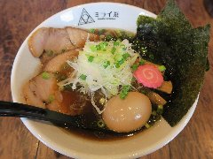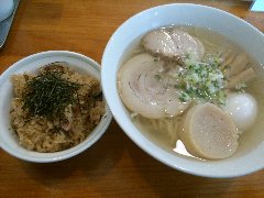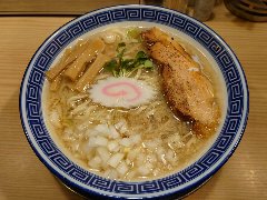 麺屋 正路 | ラーメン | 東京都杉並区上荻 | ★★★ (2016.12.23) | 普通 | ![]() | 荻窪駅北口から1分、駅ビルとタウンセブンという商業ビルの間の通路に看板が出ています。狭くて薄暗い階段を2階に上がると玄関があります。まさみちと読みます。店内は、カウンター席が8つ、明るくてきれいです。特製秋刀魚節(白)(1000円)を注文しました。海苔、メンマ、チャーシュー(鶏)、ローストポーク、ワンタン、味玉、柚子、玉ねぎ、水菜、九条ネギが入っていました。麺は細めでほぼストレート、真空玉子麺だそうです。スープは、白醤油の返し、秋刀魚節、鶏がら、豚からなどで出汁をとっているそうです。上品でとても美味しいスープです。他には、特製秋刀魚節(黒)、ローストポーク丼、鶏わさびTKGなどがありました。白と黒で麺や具を変えているようです。 |