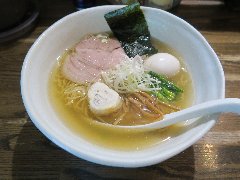 ![]() | 恵比寿駅西口から2分ほど、駒沢通りを渡った先の路地にあります。ビルの1階です。かむろと読みます。ガラス張りで店内が見えます。店内は、カウンター席が多数、テーブルが1つありました。カウンターが奥に延びています。テーブルには昆布酢と自家製辣油が置いてありました。特製純白湯らぁめん(1200円)を注文しました。鳥皮、鶏のチャーシュー(2種類)、味玉、プチトマト、インゲン、マッシュルーム、キャベツ、刻み玉ねぎが入っていました。柚子胡椒が添えられます。麺は、やや太めのストレートです。スープは鶏白湯、かなり白っぽい色です。鶏ガラと水だけで無化調で作るそうです。鶏の旨味が濃厚です。ややしょっぱい気もしました。美味しかったです。お値段はちょっと高めです。他には、鶏清湯らぁめん、鶏坦湯らぁめん、濃厚辛和えめんなどがありました。 |