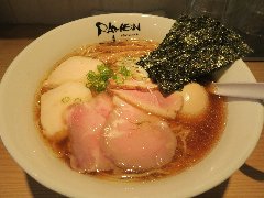 RAMEN | ラーメン | 東京都荒川区東尾久 | ★★ (2015.7.11) | 普通 | ![]() | 都電荒川線の東尾久三丁目駅から2分ほど、おぐとぴあ23商店街にあります。変わった店名ですが、1/20(1月20日)という意味だそうです。店主は山頭火で修行をしていたそうです。何となく和風な外観です。店内は、カウンター席が8つ、きれいです。特製醤油そば(1030円)を注文しました。海苔(3枚)、味玉、鶏チャーシュー(2枚)、鴨チャーシュー(2枚)、豚チャーシュー(2枚)、メンマ、刻みネギ、青ネギが入っていました。チャーシューはどれも低温調理です。麺は細めのストレートです。スープは少し濁った鶏出汁、国産丸大豆生揚げ醤油、鶏油が入っています。見た目より和風で、美味しいスープです。他には塩そば、各種トッピングなどがありました。 |
