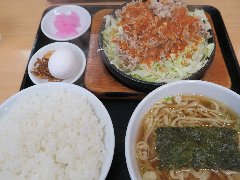 大盛軒 | ラーメン | 東京都中野区東中野 | ★★ (2016.10.22) | 小安 | ![]() | 東中野駅東口(南側)から1分、すぐ近くにあります。おおもりけんと読みます。店内は、カウンター席が8つ、テーブルが多数ありました。明るくてきれいなお店です。鉄板麺というメニューが名物です。もちろん、鉄板麺(880円)を注文しました。鉄板麺は、鉄板焼きと半ラーメンのセットです。鉄板焼きは、大量のキャベツ、豚肉に特製タレが掛かり、もうもうと湯気を上げて出てきます。そこに生卵、ニンニクチップ、フライドオニオン、さらにタバスコを加えてかき混ぜます。タバスコ?と最初は思うのですが、これが不思議と美味しくなります。ご飯との相性もいいです。ラーメンは平打ちです。さらに大盛りのご飯も付くので、全体としてかなりのボリュームです。他には、ビーフ鉄板麺、ビッグ鉄板麺、焼肉麺、カルビ麺などがありました。普通のラーメンもあります。 |