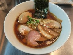 ![]() | 十条駅北口から4分ほど、十条銀座を曲がって十条仲通りを進むとあります。黒壁に白い暖簾が目印です。麺処ほん田の系列店です。店内は、カウンター席が10ありました。特製鶏そば(醤油)(970円)を注文しました。青菜、メンマ、味玉、チャーシュー(3種類)、ワンタン、刻みネギが入っていました。チャーシューは3種類、豚肩ロースはレア、豚バラは香ばしく、鶏ムネ肉は旨味がしみていました。麺は細めのストレートです。スープは鶏清湯、地養鶏、名古屋コーチンなどの出汁、天草大王から作った鶏油、生揚げ醤油などのタレから作るそうです。かなりの拘りスープです。鶏と醤油の旨味がしっかりしていて美味しかったです。チャーシューも美味しいです。他には、鶏白湯濃厚つけ麺、雨二郎、鶏そば(塩)などがありました。 |