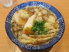 らぁ麺 すぎ本 | ラーメン | 東京都中野区鷺宮 | ★★★ (2017.8.11) | 普通 | ![]() | 鷺ノ宮駅から1、2分、駅から通りを渡った先の路地にあります。黒い大きな看板が出ています。板壁の和風な外観です。店内は、カウンター席が9つありました。醤油特製らぁ麺(1,000)を注文しました。名古屋コーチンの味玉、チャーシュー(3種類)、穂先メンマ、ワンタン(2個)、刻みネギが入っていました。チャーシューは、豚が2枚、鶏が1枚です。麺は、普通の太さでやや縮れていました、スープは、きれいな色の清湯で鶏と魚介系の出汁、醤油の旨味も感じます。とても美味しいです。見た目にもいいです。他には、塩らぁ麺、醤油つけ麺、塩つけ麺などがありました。人気があるようでした。 |