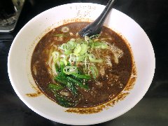 ![]() | 日暮里駅東口から1分、ロータリーの正面にあります。ビルの1階です。店内は、カウンター席が5つ、テーブルが5つありました。麺を手打ちしていて外からも見えます。担々麺(950円)と手打餃子(500円)を注文しました。注文後に麺を打つそうです。担々麺は、ほうれん草、挽き肉、ゴマ、刻みネギが入っていました。手打ちの麺は柔らめでコシがあり、やや太さが不揃いです。スープは黒ゴマの風味が香ばしいです。見た目ほど濃厚ではありません。餃子は大きめで皮が厚め、こちらもモチモチしていました。美味しかったです。若干、値段が高い気がしました。他には、ラーメン、タン麺、五目やきそば、つけ麺などがありました。 |