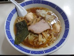 ![]() | 新井薬師前駅北口から3、4分、上高田中通り沿いにあります。3階建ての建物です。赤い暖簾が掛かっていました。店内は、カウンター席が4つ、テーブルが2つありました。レトロな雰囲気です。料理は女将が作っていました。ラーメン(550円)と餃子(400円)を注文しました。なると、わかめ、海苔、メンマ、チャーシュー、刻みネギが入っていました。麺は細めでやや縮れていました。スープは鶏ガラ出汁、シンプルで懐かしい味わいでした。餃子は、外はカリッと中はジューシー、ニンニクが利いていました。美味しかったです。そして安いです。他には、タンメン、ワンタンメン、やきめし、焼肉定食などがありました。 |