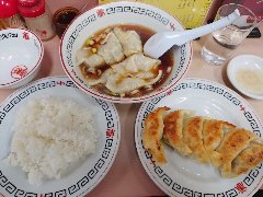 ![]() | 東中野駅西口から3、4分、東中野ギンザ通り沿いにあります。2階建ての建物です。黄色い庇の看板です。4、5人が外待ちしていました。店内は、カウンター席が5つ、テーブルが4つありました。レトロでアットホームな雰囲気でした。焼餃子(400円)、水餃子(400円)、ライス(200円)を注文しました。焼餃子は、皮は薄めでカリカリ、餡はたっぷりでジューシーです。水餃子はつるつる、中華スープに入っていました。どちらも餡は肉が多めでした。美味しかったです。そして安いです。他には、タンメン、サーティーメン、ジャージャーメン、チャーハンなどがありました。人気があるようです。 |