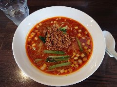 ![]() | 駒込駅東口から3分ほど、谷田川通り沿いにあります。ビルの1階です。えんじ色の看板が出ています。店内は、カウンター席が4つ、テーブルが2つありました。小ぢんまりしています。ランチメニューは担々麺のみです。四川担々麺(700円)を注文しました。チンゲンサイ、ひき肉、ネギが入っていました。麺は細めでやや縮れていました。スープは香ばしいゴマの香り、濃厚な旨味があります。見た目より辛味や痺れはそこそこ、自分はこれくらいがちょうどいいです。美味しかったです。他には、冷やし担々麺、焼き餃子、杏仁豆腐がありました。 |