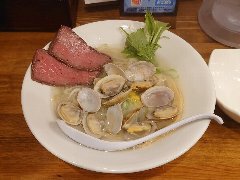 ![]() | 阿佐ヶ谷駅北口から1、2分、駅前のある複合ビルの中にあります。大きなノボリが立っていました。店内は、カウンター席が15ありました。明るくてきれいです。席数が多いですがご主人のワンオペでした。牛ローストあさりそば(1250円)を注文しました。あさり、ローストビーフ、水菜、メンマ、刻みネギ、柚子皮が入っていました。麺は細めのストレートです。スープはしじみやあさり、貝柱などの貝出汁、きれいに透き通っていました。貝の旨味がじんわりと体に沁みます。二日酔いによさそうです。美味しかったです。他には、トリプルそば、岩のリそば、などがありました。 |