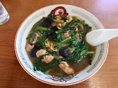 ![]() | 三河島駅から5、6分、駅の南東方向の路地にあります。平屋の建物です。赤い看板庇の外観です。店内は、カウンター席が7つ、テーブルが4つありました。昔ながらの雰囲気、ご主人のワンオペです。ニラソバ(800円)を注文しました。、ニラ、玉ねぎ、豚バラ、きくらげなどが入っていました。麺は中細で縮れていました。スープは中華出汁に具材を炒めた汁も入っている感じです。ニラはシャキシャキ、豚肉の旨味も出たスープがいいです。美味しかったです。他には、ラーメン、もやしそば、チャーハンなどがありました。 |