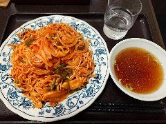 ![]() | 上中里駅から8、9分、滝野川支所前通り沿い、旧古河庭園の近くです。マンションの1階です。外にメニューの写真がでています。店内は、テーブルが6つありました。やや薄暗いです。中華ナポリタン(800円)を注文しました。中華スープが付きます。豚肉、チャーシュー、ピーマン、玉ねぎが入っていました。麺は縮れた中華麺です。味付けはケチャップと中華スープで濃いめの味付けでした。麺はけっこう多め、焦げ目が香ばしかったです。美味しかったです。他には、塩ラーメン、チャーハン、ホイコーロー定食などがありました。 |