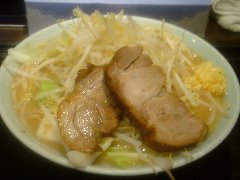 町田大勝軒 | ラーメン | 東京都町田市原町田 | ★ (2011.12.26) | 普通 | ![]() | JR町田駅ターミナル口の近くにあります。近くにはラーメン屋が多く激戦区ですね。お店はまだ新しくてきれいです。カウンター席が10、テーブルがいくつかあります。もちろんあの有名なお店の系列店ですが、つけ麺の他になんと二郎インスパイア系のラーメンを食べられます。とんこつ野菜ラーメン(並・ニンニク入り)(650円)を食べました。チャーシュー(厚切りが2枚)、もやし、キャベツが乗っていました。麺は太麺です。スープはとんこつ醤油です。コテコテで濃いですが美味しいです。酢を少し入れるとさっぱりします。並み盛でえも麺は300g、ボリューム満点でお腹いっぱいです。中盛り(450g)までは同料金です。店員さんは丁寧です。 |