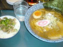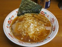 支那そば | ラーメン | 東京都町田市森野 | ★ (2011.3.1) | 普通 | 無し | 小田急の町田駅から町田街道を少し歩いたところにあります。店内はなんとなく昭和の雰囲気です。カウンター席のみの10席で狭いです。支那そば(700円)+味玉(100円)を食べました。大盛りは無料です。味玉(半+1)、水菜、チャーシュー、のり、めんま、ネギが入っていました。麺は細めでストレートです。鶏と魚の醤油スープです。あっさりしていて美味しいです。 |