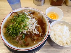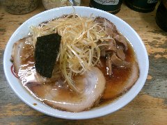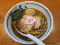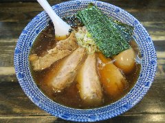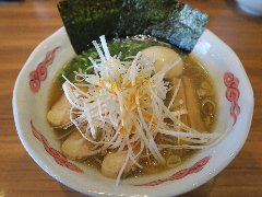 ![]() | 西八王子駅北口から2、3分、国道20号沿い、西八王子駅西の交差点の近くにあります。黄色いテントに大きく店名が書かれていました。ちょっとくたびれた外観です。店内は、カウンター席が9つありました。小ぢんまりしています。メニューは壁に貼られていました。中華そば(600円)を注文しました。チャーシュー、メンマ、刻み玉ねぎが入っていました。麺は細めのストレートです。スープは、豚骨、鰹、鯖節、野菜などの出汁と秘伝の醤油とラードで作るそうです。しっかりした旨味のスープに刻み玉ねぎがよく合います。美味しかったです。他には、メンマラーメン、ネギラーメン、玉ねぎ多めなどがありました。人気があるようで平日の16時に満席でした。 |