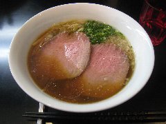 中華そば | ラーメン | 東京都調布市若葉町 | ★★★ (2017.4.28) | 普通 | ![]() | 仙川駅から南に10分ほど、若葉町二丁目南の交差点の近くにあります。平日、しかも駅から遠いのにもかかわらず開店前に10名以上の行列が出来ていました。かなりの人気店です。外観はとても地味で白い暖簾が掛かっています。店内は、L字のカウンター席が8つ、こじんまりしています。味玉チャーシュー中華そば(1080円)を注文しました。チャーシュー、メンマ、味玉、かいわれ、白髪ネギが入っていました。チャーシューは、低温調理のレアタイプです。麺は細めのストレートです。スープは、鴨ガラで取った出汁に鴨油、けっこう醤油の味を感じます。きれいな色のスープです。評判通り美味しいです。他には、つけそば、煮干しそば、煮干しつけそば、たきこみご飯などがありました。お店を出ると行列が伸びていました。 |