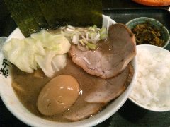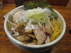 ぶぶか | ラーメン | 東京都武蔵野市吉祥寺南町 | ★ (2011.12.21) | 普通 | ![]() | 吉祥寺駅のすぐ近く、井の頭線のガード沿いにあります。カップラーメンにもなっている油そばが有名なお店です。カウンター席が11つあります。油チャーシューそば(840円)を食べました。ナルト、メンマ、海苔、チャーシュー(5枚)、ネギが入っていました。麺は太麺です。油そばなので暖かいスープは入っていません。底に入っているスープと混ぜて食べます。美味しいです。なんともジャンク感がある食べ物です。でも途中でちょっと飽きてきました。油そばと豚骨ラーメンがメインのようです。 |