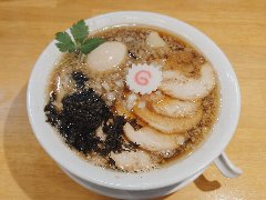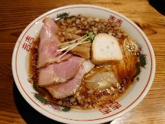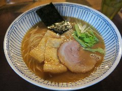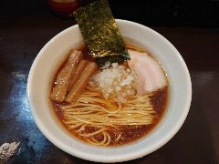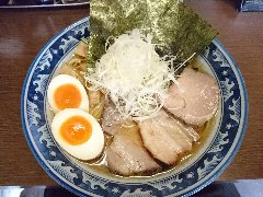 ![]() | 国分寺駅北口から3分ほど、ロータリーの北東の方向の路地にあります。金文字の看板が出ています。店内は、カウンター席が8つありました。黒壁で今風、きれいです。特製背脂煮干しそば(1000円)を注文しました。海苔、チャーシュー(2種類)、メンマ、味玉、刻み玉ねぎ、小ネギ、背油が入っていました。麺は細めのストレートです。スープは煮干しや鶏の出汁、透き通っています。しっかりした煮干と醤油の旨味と背脂の甘味がよく合います。チャーシューは肩ロースと炙ったバラ、大きくて分厚かったです。美味しかったです。他には、塩煮干しそば、濃煮干しらーめん、つけそばなどがありました。 |