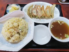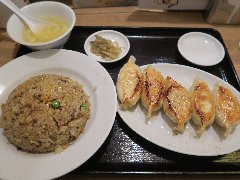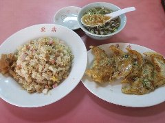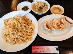 ![]() | 多磨駅から2分ほど、人見街道沿いにあります。ビジネスホテルの1階にります。フロントの奥に入口があります。店内は、テーブルが多数ありました。まあまあ広いです。大学が近いようで賑わってました。チャーハン(950円)と餃子(630円)を注文しました。具だくさんのスープ付きです。チャーハンは、玉子、チャーシュー、かまぼこ、ネギなどが入っていました。玉子が多めです。パラパラしていて量はけっこう多めです。餃子は中ぶりでもちもちしていました。美味しかったです。やや高めです。他には、麻婆豆腐定食、レバニラ定食、天津丼、五目焼きそばなどがありました。 |