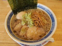 ![]() | 新小岩駅南口から5、6分、平和橋通り沿いにあります。マンションの1階、黒地に白い文字の看板です。一颯で、いぶきと読むそうです。店内は、カウンター席が9つありました。明るくてきれい、妙に静かでした。いぶきそば(中)(950円)を注文しました。メンマ、ほうれん草、チャーシュー(肩ロース)、煮玉子(半)、ワンタン、刻みネギが入っていました。麺は普通の太さで縮れていました。スープは、煮干し+動物系の出汁で醤油味、しっかりした煮干し味ですが、えぐみはほとんどありません。美味しかったです。中はけっこう量がありました。他には、中華そば、つけそば、肉そば、チャーハンなどがありました。トッピングが豊富です。 |