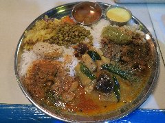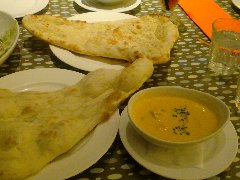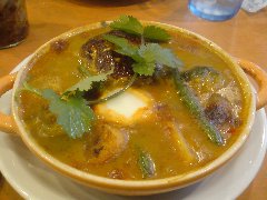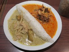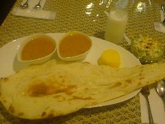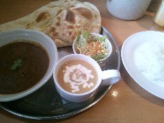 NIRVANA | ヒマラヤ | 神奈川県川崎市幸区鹿島田 | ★ (2011.11.26) | 普通 | ![]() | 鹿島田駅のすぐ近く、マルエツの正面の二階にあります。ヒマラヤンカレーのお店です。きれいなお店で壁は鮮やかなオレンジ色でした。テーブルが幾つも並んでいて結構広いです。テレビにはかなり濃いインドのダンス映画?が流れていました。ちょうど正午になって一気に客が入ってきて満員になっていました。ランチCセット(880円)とラッシー(100円)を頼みました。カレーは6種類から2つを選べます。辛さは3段階から選べます。チキンカリー、キーマ&エッグカレーにしました。ナンとライスとサラダが付きます。ナンとライスはおかわり自由です。美味しいです。でもナンもライスもある割りにカレーの量が少ないです。店員さんがきびきびとしていました。 |
