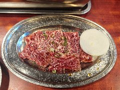 ![]() | 鳴子御殿湯駅から7、8分、東鳴子温泉街にあります。平屋の建物です。屋根が看板になっていました。店内は、カウンター席が4つ、小上がりのテーブルが5つありました。予約が無難と聞いていたので予約していきました。思っより小ぢんまりしていました。和牛上カルビ、牛タン、せせり、鶏肉カルビ、牛ハラミなどを注文しました。上カルビは柔らか、せせりはコリコリでした。どれも美味しかったです。他には、生ラム、牛ホルモン、若鶏砂肝、イカ焼き、盛岡冷麺などがありました。ご主人面白い、カウンターに座るとご主人と常連さんの会話が聞けて面白いです。カウンターでは混むとコンロも相席です(^ ^) |
