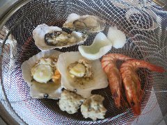 地獄蒸し工房 鉄輪 | 郷土料理 | 大分県別府市風呂本 | ★★ (2018.2.17) | 普通 | ![]() | 別府大学駅から2.5km、鉄輪(かんなわ)温泉にあります。そこらじゅうからは温泉の湯気がもくもく上がっています。割りと新しい建物です。地獄蒸しとは、地獄蒸し釜で温泉の蒸気で食材を蒸します。地獄蒸し釜基本使用料(510円)を払い、食材を買って自分で蒸します。海鮮Bセット(1500円)、野菜いもセット(700円)、手羽先ウィンナーセット(650円)を買いました。席を確保してから蒸し釜に食材を持って行くと、係りのおばちゃんが指導してくれます。食材によって時間差で蒸しあがるので、3つの金属のザルに食材を入れ、3層に重ねて蒸し釜に入れます。ストップウォッチで計って時間になったら上から順番に出していきます。30分掛けて茹で上がりました。程よく火が通り魚介も野菜も柔らかいです。蒸しただけなので至ってシンプルですが美味しいです。そしてそれ以上に楽しいです。他には、豚しゃぶセット、豚肉ちまき、イカシュウマイなどがありました。 |