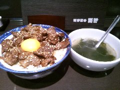 腰塚 | 焼肉 | 神奈川県横浜市港北区新横浜 | ★ (2014.10.31) | 普通 | ![]() | 新横浜の駅から2、3分の繁華街にあります。ビルの2階にありきれいなお店です。黒毛和牛が売りのお店です。カウンター、テーブルが多数ありました。カウンターにもロースターが付いています。ランチメニュー、数量限定の黒毛和牛焼き肉丼(980円)を注文しました。ライス大盛は無料です。ワカメスープが付きます。牛肉の上に黄身が乗っていました。牛肉は小ぶりでちょっと寂しいかったです。他のいろいろランチメニューがありました。 |