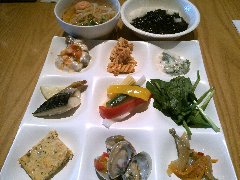 カザーナ | インド | 神奈川県横浜市西区みなとみらい | ★ (2012.2.2) | 普通 | 無し | みなとみらい、クイーンズスクエア内B1Fのレストラン街にあります。インド料理のお店です。ランチタイムはカレーのバイキングを行っています。ランチバイキング(1000円)を食べました。バイキングでは、チキンカレー、野菜カレー、豆カレー、マトンカレー、ナン、サフランライス、ジャスミンライス、パパド(薄い煎餅みたいなもの)、サラダ、フルーツ(1種類)が食べ放題です。美味しいです。いろいろの種類のカレーが食べられていいですね。ナンはいまいちでした。食べ放題なのでガッツリしたい人にはいいです。昼時で混んでいました。 |