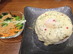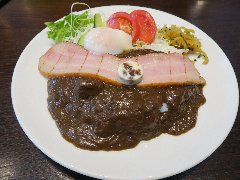 伊勢佐木長者町駅から4、5分、国道16号沿いにあります。レンガをはめ込んだような壁の外観です。店内は、カウンター席が11、明るくてきれいです。カウンターには1人ずつランチョンマットが敷かれています。福神漬けとらっきょうが置かれています。ハンバーグカレー(ビーフ乗せ)(1050円)を注文しました。チーズが乗った手作りのハンバーグ、茹で卵、茹で野菜、牛肉が乗っていました。若干とろみがある欧風カレーは5日間掛けて作るそうです。美味しいです。ご飯の量は多めです。他には、メンチカレー、チキンカツカレー、野菜カレーなどがありました。 |