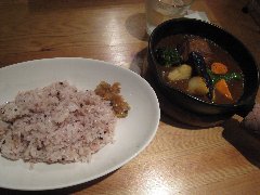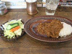 わいんさっぷ | カレー | 岩手県花巻市南万丁目 | ★ (2011.9.11) | 普通 | ![]() | 東北道の南花巻ICの近く、住宅街の中にあり非常に探しづらいです。普通の一軒家のようで看板も控え目です。わいんさっぷとはリンゴの品種のようです。店内はちょっと洒落た他人の家に来たような感じです。薪ストーブがあります。カウンター席とテーブルが3つと、もう一つの部屋にもテーブルがあるようです。大きな窓の外にはリンゴ畑が見えます。店員は女性2人です。牛すじカレーセット(1000円)を食べました。先ずはサラダ、新鮮な野菜のサラダで酸味のあるドレッシングが添えられます。牛すじカレーはサフランライスの上に素揚げしたジャガイモ、ニンジン、ピーマン、ナス、カボチャが乗っています。カレーには牛すじが2切れ入っていました。美味しいです。皿が浅いのでルーが少ないのですがお代わりできます。でもこれはもっと深い皿にした方がいいのではないかな。最後にデザートとコーヒーが付きます。デザートはこの日はリンゴの焼き菓子でした。コーヒーには黒糖が付きます。 |