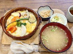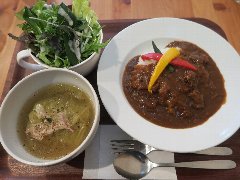 ![]() | 只見駅から北に3km弱、国道252号の国道289号との北側の分岐の近くにあります。最寄りは会津蒲生駅ですが、現在は不通区間になっています。重要文化財の長谷部家住宅のすぐ近くです。普通の家のような玄関です。店内は、大テーブルが2つありました。やはり普通の家に近い雰囲気ですが、厨房は広かったです。冷たいハーブティーが出されました。インド風会津地鶏カレー(1100円)を注文しました。サラダと自家製ピクルスが付きます。ちゃんとしたサラダです。カレーは、スパイス、玉ねぎ、リンゴなどを使って3日間掛けて作るそうです。程々なスパイシーさとほんのり甘味、とろみがあるタイプです。美味しかったです。他には、そば粉のガレット、地鶏のペペロンチーノ、モッツァレラとトマトのパスタなどがありました。夜はコース料理などがあるようです。家にいるような雰囲気でまったりでまったり出来ました。 |