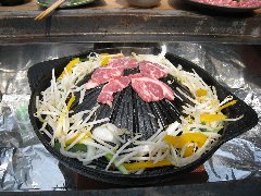 蒸気機関車 | BBQ | 栃木県那須郡那須町高久乙 | 無し (2003.11.1) | 小高 | ![]() | 東北道那須IC県道17号近くにあります。料理は結構大きなサイズの蒸気機関車で運ばれてきます(と言っても電動です)。運ばれてくるときは駅の構内のような放送で知らせてくれます。店内には鉄道に関係あるものがたくさん展示されています。料理の方は焼き物はがメインで、野菜に肉をかぶせ蒸し焼きにする感じです。テーブルの鉄板で焼いて食べます。ご飯やお茶は駅弁のような容器に入っています。お値段は結構高めです。話のネタにはいいかもしれません。 |